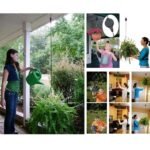 🌳🌱No more unsafe balancing on step ladders with heavy water cans! This handy pulley makes it easy to lower and raise your hanging baskets for watering. feeding. and plant care. A spring-loaded tape locks the basket in place at the desired height.