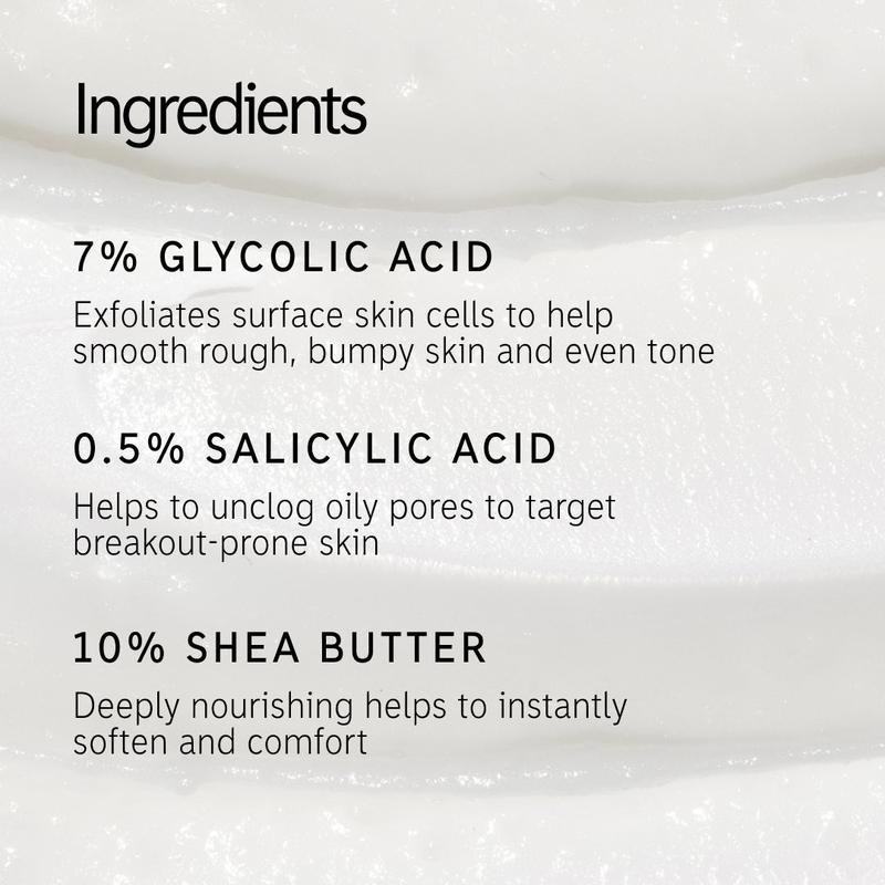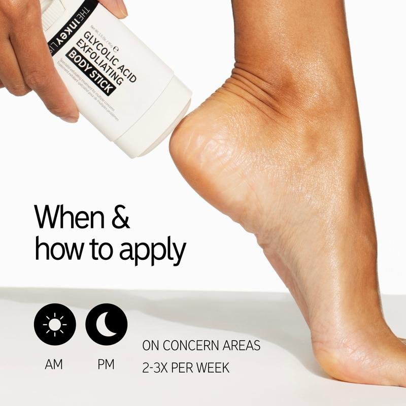 What you get: Our TikTok viral glycolic acid exfoliating body stick powered by chemical exfoliation that targets multiple body skin concerns fast – keratosis pilaris (KP) bumps, ingrown hairs, rough skin and breakouts. Clinically proven to improve skin texture in as little as 7 days*. Β  Why it works: Powered by 7% Glycolic Acid to exfoliate dead skin and smooth bumps. Salicylic Acid unclogs pores and tackles breakouts, while Shea Butter deeply nourishes and soothes skin. How it feels: Lightweight, non-sticky, easy-glide glycolic acid exfoliating body stick. When to use: AM or PM. Apply glycolic acid exfolitor directly to dry skin – no rinsing needed.