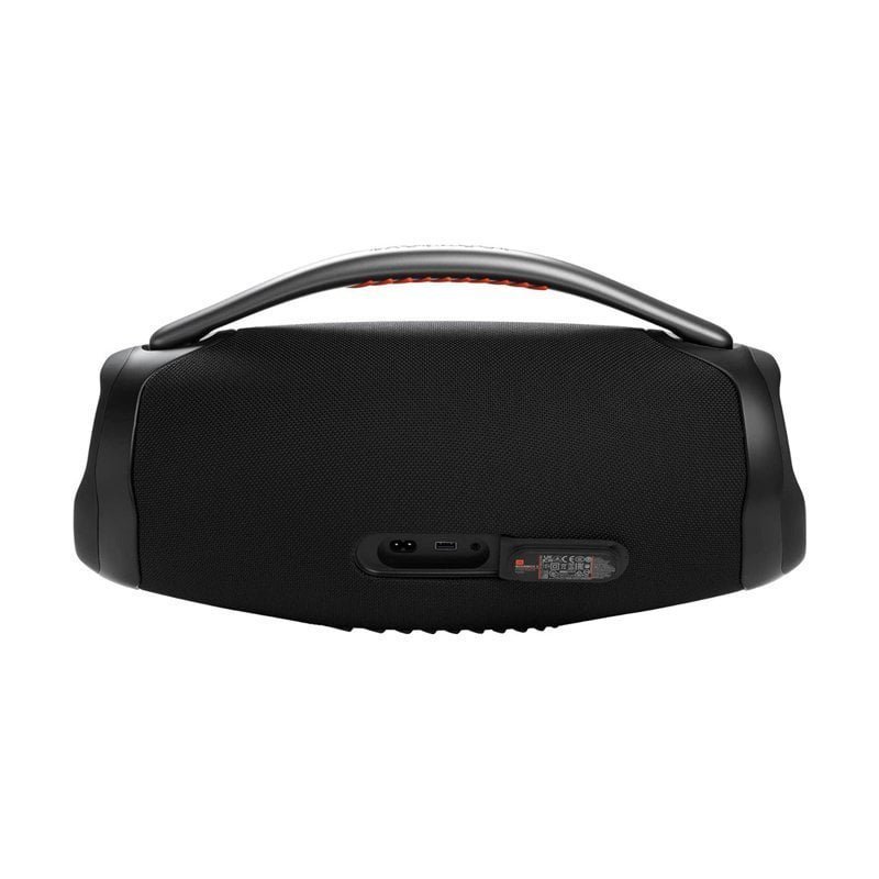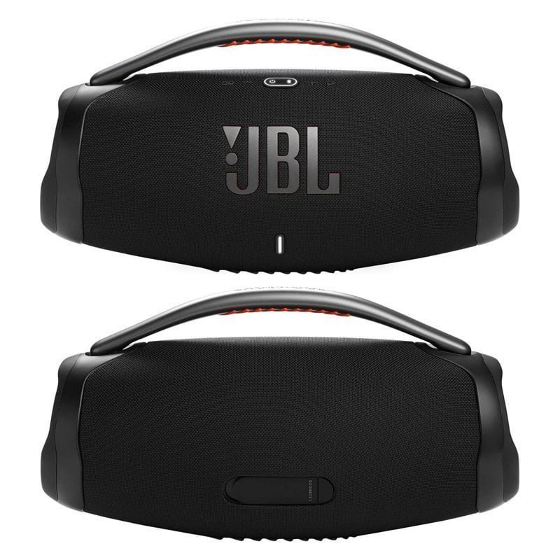 • IP67 dust and water proof: To the pool. To the park. The JBL Boombox 3 is IP67 dustproof and waterproof. so you can bring your speaker anywhere. rain or shine. Strong. bold design: We’ve updated the sleek. iconic JBL silhouette. With twin sidecaps and a sturdy metal handle with an eye-catching orange silicone grip. you can take your musicβ€”and your styleβ€”anywhere.